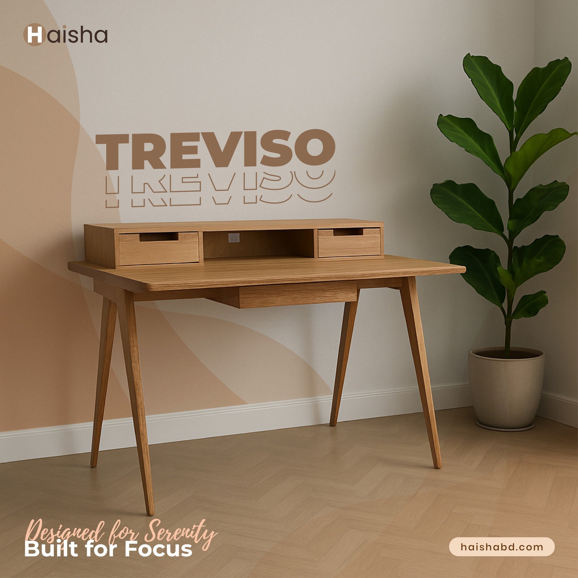 Transform your work day with Treviso Table and Chair made from premium oak and shegun materials. Upgrade your workspace with the 80 grade premium lacquer finish for only BDT 70,000.